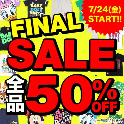 株式会社コージィコーポレーションが運営するファミリーカジュアルブランドBABYDOLL(ベビードール)がBABYDOLL・STARVATIONS(スターベイションズ)各店、通販各店にて、7月24日(金)より<ファイナルセール!夏物全品50%OFF>を開催します。