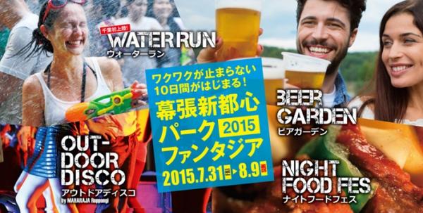 パークファンタジア2015では今話題の「ウォーターラン」を初め、「アウトドアディスコ」、「ビアガーデン」、「ナイトフードフェス」とイベント盛りだくさんのフェスです。ウォーターランはタイの水かけ祭り「ソンクラーン」をテーマに、びしょ濡れになりながら水鉄砲を片手に行く手を阻む障害物やゾンビと戦いながら走るイベントです。
