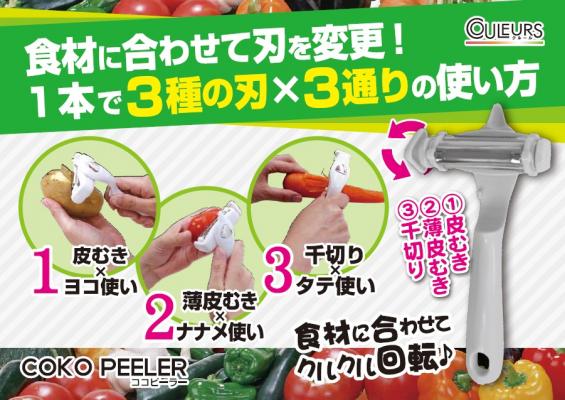 食品・雑貨の製造・企画・輸入・輸出、及び販売を手掛ける株式会社ヨコヤマコーポレーション(群馬県高崎市江木町 代表取締役:横山勉)は、3種類×3通りの使い方!食材によって使い分け!芽取りもついた多機能ピーラー『ココピーラ―』を11月10日に新発売いたします!