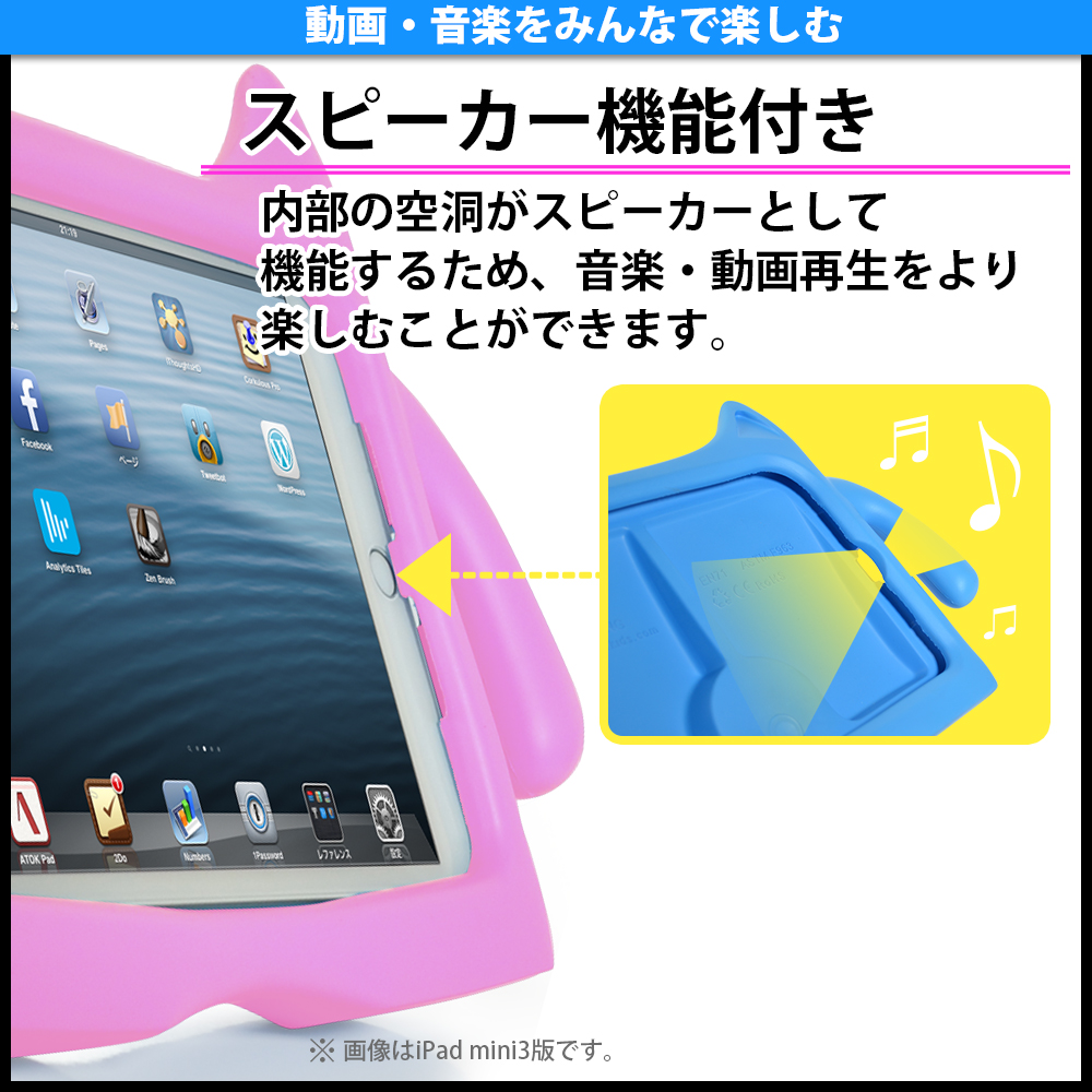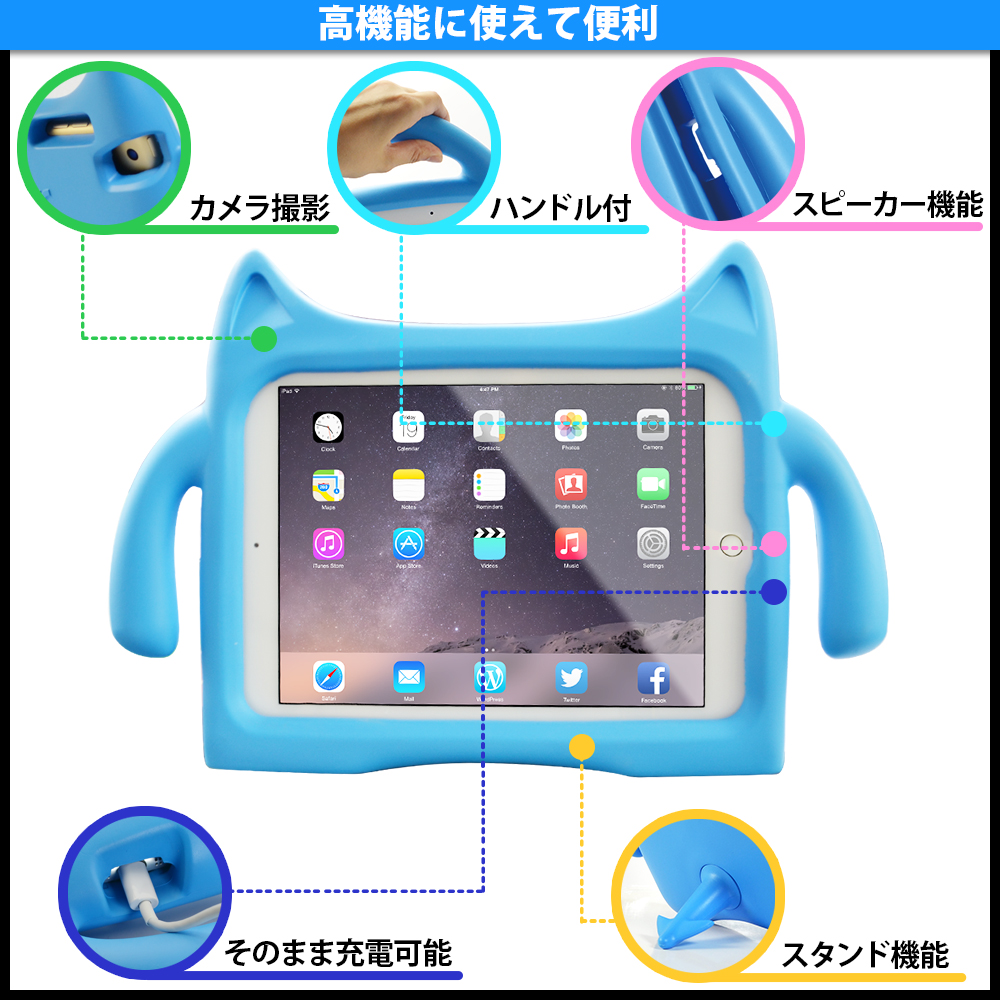 子供に人気なかわいいデビルデザインを採用。お子様の使用を第一に考え、柔らかく耐久性のある素材を使用し、角部分はもちろん全体に丸みを帯びた安心設計で作成されています。衝撃吸収設計により落下などの衝撃からiPadを守ります。触り心地もソフトで優しく感じられ、ずっと触っていたくなる心地よさです。またiPadを出し入れする時も傷が付きにくくなっておりますので、安心してご使用することが出来ます。