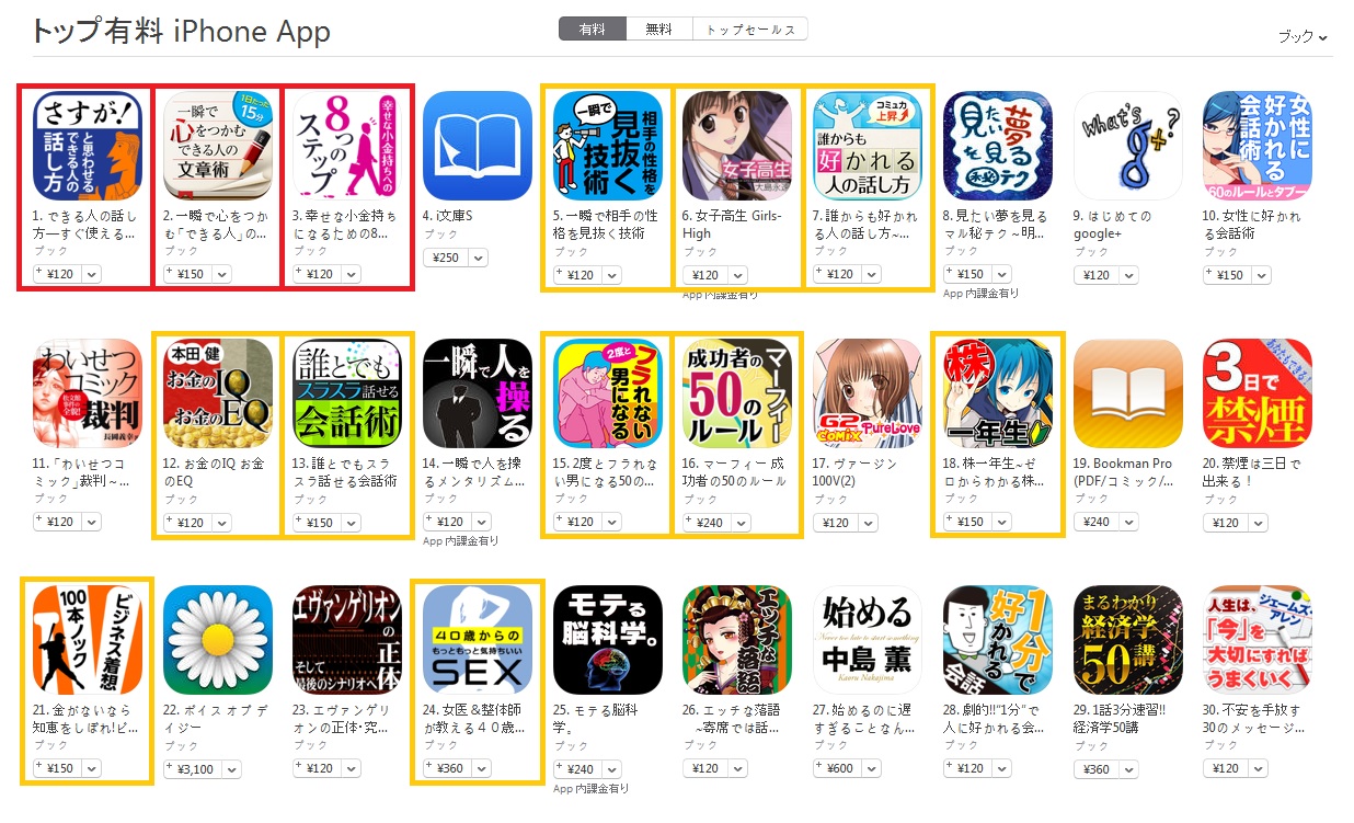 1位の「できる人の話し方―すぐ使えるとっておき10のテクニック」はApp Store有料電子書籍アプリランキングにおいて再び返り咲き1位を獲得!