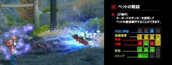 (左)「直接操作でのペットバトル」、(右)ペット操作方法