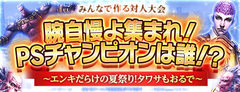 「腕自慢よ集まれ!PSチャンピオンは誰!?~エンキだらけの夏祭り!タワサもおるで~」開催!