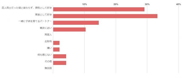 また、「一緒に子供を育てるパートナー」と感じている方が14.6%、「親友に近い」と感じている方が10.4%でした。