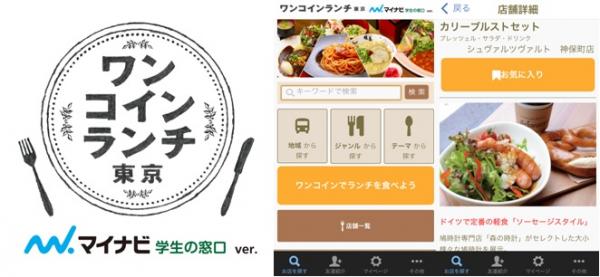今回はこのような人気を背景に、アプリ版として『ワンコインランチ東京 マイナビ学生の窓口Ver.』をリリースしました。