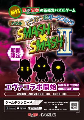 当社が配信しているパズルゲームアプリ「どうぶつのオーケストラ SMASH×SMASHII」(以下、スマスマ)が『エヴァンゲリオン』とコラボレーションし、期間限定でコラボキャラクターが登場します。