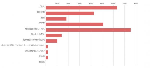 63.3%のママさんは、「ご主人」との連絡にもSNSを利用されていることが分かりました。メールや電話を使うよりも、SNSで連絡を取り合うことが多いようです。