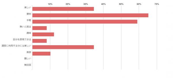 また、「楽しい」と感じている方が34.7%いらっしゃいましたが、同数の方が「適度に利用する分には楽しい」と感じていることもわかりました。