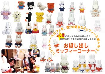 8月8日(土)から10月20日まで開催!30体のミッフィーぬいぐるみから、すきなミッフィーちゃんを選んで、カフェを一緒に楽しもう!貸し出しミッフィーコーナースタートします!