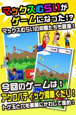 「マックスむらいの滑車下り」は子供から大人まで誰でも簡単に楽しめるシンプルなiPhone、Android用ミニゲームです。