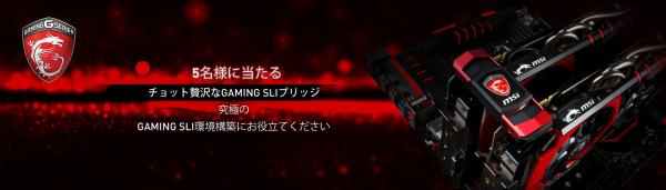 2015年8月06日 -Micro-Star Interna tional Co. Ltd., 台湾・新北市- Micro- Star International Co. Ltd.(MSI)は、4K解像度でも最高のゲーム体験を実現できるようにするNVIDIA SLI環境構築をサポートする新製品「2way SLI Bridge L」の発売を記念して、8月10日~23日まで、Facebook上にて同製品 (3,980円相当) を5名さまにプレゼントするキャンペーンを実施いたします。同製品は、NVIDIA GeForce GTXグラフィックスカード2枚構成のSLIに対応し、カード間に2スロットの空きスペースがある環境に適応します。SLIブリッジの外装にはメタル素材のGaming Armorを採用、GAMINGロゴのイルミネーション機能も搭載されています。