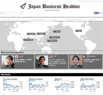 「Japan Business Headline」とは、世界各国で活躍する日本企業や現地企業の経営者インタビューを日本語と現地語で紹介するメディアです。日本の事業を海外展開でローカライズ化して成功している経営者、異国で起業し活躍している経営者、シリコンバレーの米国人経営者など、グローバルに活躍する方々を紹介しています。