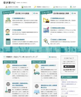 2015年7月にリニューアルを行った【空き家ナビ】は増え続けている日本の空き家に焦点をあてて、空き家にまつわる税金、助成金制度などの啓蒙コンテンツから空き家、更地の収益化、シェアハウスへの転用などに関する提案を行っています。