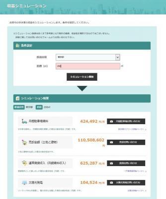 国交省、統計局などのデータに加えて自社の駐車場ビッグデータを応用した計算システムを導入しており、都道府県と土地面積を記入するだけで簡単に収益のイメージをつかむことができます。