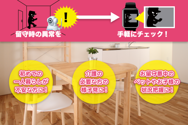 また今回のバージョンで、2015年4月24日にApple社から発売開始されたAppleWatchに対応し、Watch上で素早く手軽にカメラの映像を確認することができます。また、Watch上でカメラの方向を調整する機能も搭載いたしました。これによって、iPhoneで確認するよりも手軽に、より場所や状況を選ばずに、カメラの映像を確認することができるようになりました。iPhoneを取り出さなくても、腕時計を見るように素早く映像を見ることができます。