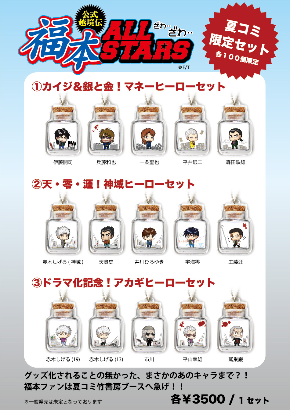 ラインナップは、「カイジ」「アカギ」「天」「銀と金」「賭博覇王伝 零」「無頼伝 涯」と、魅力的な福本作品より選ばれたキャラ達、なんと総勢15人!