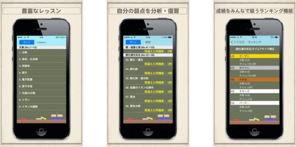 授業動画・問題は、東京大学文科II類に現役合格(経済学部卒)した者を含むメンバーが作成しています。メンバーの受験経験などを生かし、基礎からしっかり、かつ応用問題にも対応できるようなコンテンツです。問題は手軽に理解度を確認できる二択式を採用し、その他、不正解の問題だけを復習する機能、タイムアタックとそのランキングの機能などが実装されています。ランキング機能は今回の「化学基礎」で新たに導入した機能で、入試で求められる「競い合う」という要素を盛り込んでいます。