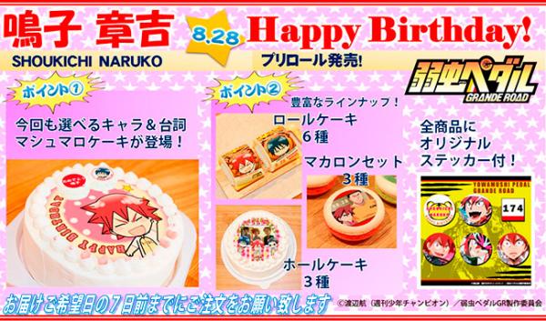「プリロール」を運営する株式会社栄通(本社:東京都八王子市)は、「弱虫ペダル GRANDE ROAD」の人気キャラクター「鳴子章吉」の誕生日限定ケーキ&マカロンを2015年8月8日に発売致しました。