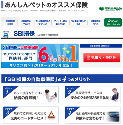 あんしんペット少額短期保険株式会社(以下、「当社」または「あんしんペット」)はSBI損害保険株式会社(以下、「SBI損保」)と代理店契約を締結し、2015年8月18日より「SBI損保の自動車保険(個人総合自動車保険)」を提供開始します。