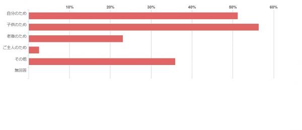 「子供のため」が56.4%で、最も多くご回答頂きました。お子さんの教育費や将来のために貯めているママさんが多くいらっしゃることがわかりました。