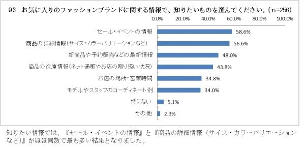 その結果、ファッションブランドのセール・イベント情報に加え、商品の詳細情報と新商品に関する情報のニーズが高く、購入前にネットで比較検討など調査をしたいと考えていることがわかりました。