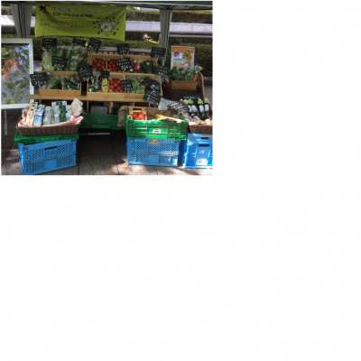 ・有機農産物の展示販売(有機柚子、有機人参、有機金時芋、有機ズッキーニ、有機トマト、有機ミディトマト、有機なす、有機オクラ、有機とうもろこし、有機モロッコいんげん)