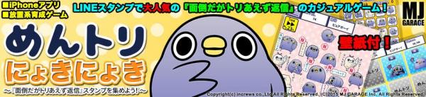 株式会社インクルーズ(東京都新宿区、代表取締役 山崎 健司)は、エムジェイガレイジ株式会社(東京都港区、代表取締役 石切山 英詔)の協力を得て、2015年8月21日(金)よりiTunes App Store内にて『めんトリにょきにょき~『面倒だがトリあえず返信』スタンプを集めよう!~』(iPhoneアプリ)の配信を開始いたしました。