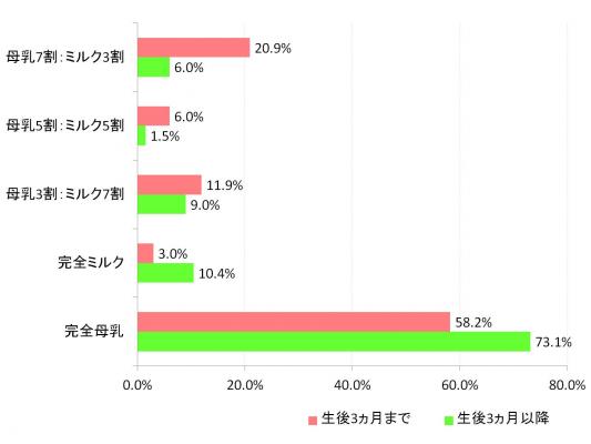 また、「完全ミルク」は生後3カ月までは3.0%なのに対し、生後3カ月以降になると10.4%に増加していました。