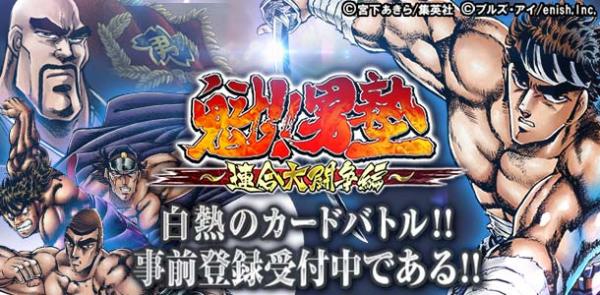 株式会社enish(本社:東京都港区、代表取締役社長:安徳 孝平、以下enish)は、株式会社集英社(本社:東京都千代田区、代表取締役社長:堀内 丸恵)の「週刊少年ジャンプ」に連載された大人気コミック作品 「魁!!男塾」のソーシャルカードバトルゲーム『魁!!男塾 ~連合大闘争編~』を、株式会社コロプラ(本社:東京都渋谷区、代表取締役社長:馬場功淳、以下コロプラ)が運営する位置情報サービスプラットフォーム 「コロプラ」にて配信することが決定しました。このたび「コロプラ」での配信に先駆けて、2015年8月25日(火)より事前登録キャンペーンを開始いた しました。