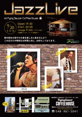 株式会社ジェブ(本社:横浜市港北区、代表取締役:太田 猛也、以下 ジェブ)は同社の埼玉支店に併設するコーヒーハウス「Flying Saucer Coffee House」で行われる「JAZZ LIVE 2015秋」を2015年9月20日(日)19時30分より共同企画・協賛致します。