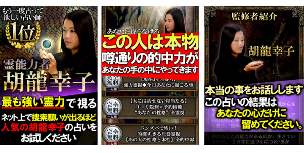 ・アプリ名称:名前だけで当たる!【霊能占い】胡龍幸子
