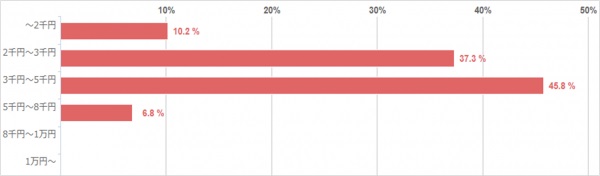 最も多かったご回答が「3千円~5千円」の45.8%でした。全体の割合を見ると、9割以上のご家庭が5千円以内で抑えており、家計の負担にならない程度に外食を楽しんでいることがわかりました。