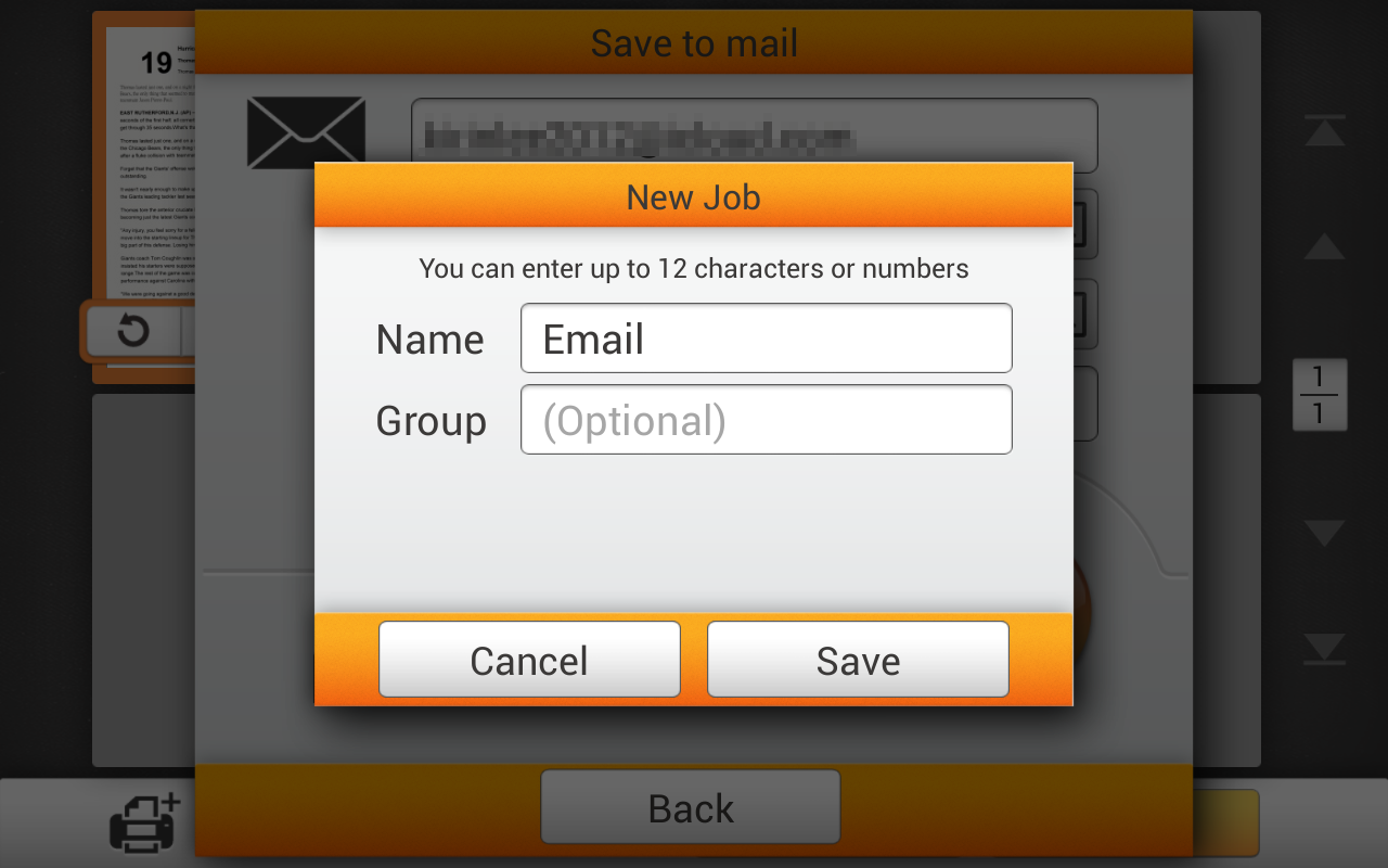 ジョブボタンにより、スキャン作業の一連の手順をひとつのボタンに割り当て、スキャンされた画像を簡単にどこにでも送ることができ、職場のスキャン作業を大幅に効率化できます。また、異なる設定を施した複数のボタンを保存することもでき、これらをジョブメニューから簡単に呼び出し、処理することができます。さらに広範囲に展開されている職場では、特別なIT技術がなくても、USBフラッシュドライブを使ってeScanにボタンを読み込んだり、保存したりできます。
