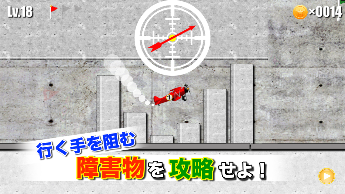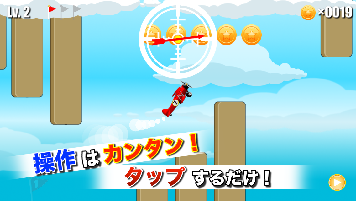 タップで飛行機をコントロールし、障害物を避けながらゴールを目指すのがこのゲームのルールです。