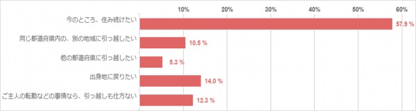 57.9%の方が「今のところ、住み続けたい」と考えており、現在は引っ越したい気持ちはないことが分かりました。