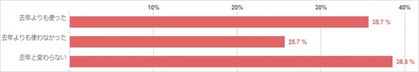 「去年と変わらない」という方が最も多く38.6%でしたが、「去年よりも使った」という方も35.7%いらっしゃり、それほど大きく数値は違いませんでした。