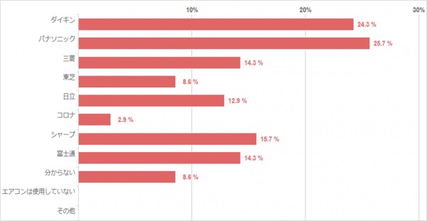 「パナソニック」が25.7%、「ダイキン」が24.3%で、この二つのメーカーが他メーカーよりも人気があるようです。現在はエアコンにも様々な機能が付いており、メーカーによっても特徴が違うので、人気が分散していることが分かりました。
