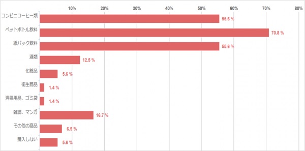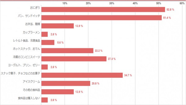 半数以上が「おにぎり」「パン、サンドイッチ」を購入しており、ささっと手軽に食事できる商品が支持されていることが分かりました。