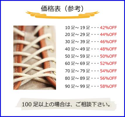 ・10足以上100足未満の注文のみ取り扱い(同種類・同色・同じ長さで10足以上)