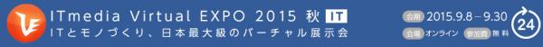 アイティメディア株式会社(本社:東京都港区、代表取締役社長:大槻利樹)は、IT・モノづくりの最新テクノロジーやソリューションが集う国内最大級のバーチャルイベント「ITmedia Virtual EXPO 2015 秋」を、本日から9月30日まで、オンライン上で開催します。開催期間中は、何度でもご来場いただくことが可能で、自宅・会社を問わず、24時間いつでも、最新情報を効率よく収集することができます。(入場無料)