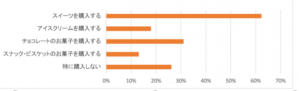 秋限定商品として出されている物の中でも「スイーツを購入する」方が6割以上と多く、アイスクリームやスナック菓子などの限定商品は、購入されている方があまりいらっしゃらない事が判明いたしました。