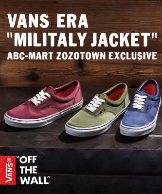 特徴 : VANSクラシックラインのアイコンモデル「ERA(エラ)」のアッパーに、ミリタリージャケット風の素材を落とし込んだアイテム。
