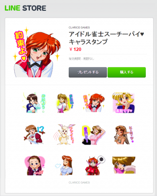 不朽の名作『アイドル雀士スーチーパイ』がLINEスタンプになって登場!スーチーパイ、ピーチパイ、レモンパイを始め、美少女雀士たちによる日常会話に使いやすいコメントから、おなじみの名台詞まで!価格は50コインor120円でLINE STOREにて発売中!