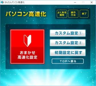 パソコン初心者の方でも安心な「おまかせ高速化設定」で