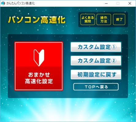 パソコン初心者の方でも安心な「おまかせ高速化設定」で