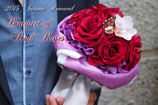 7輪の赤いバラを用いたインパクトあるデザイン。さらに2015年8月にリニューアルデザインし、360度どの角度から見ても華やかさを感じていただけるように、徹底的にバラの配置にこだわりました。またアートフラワーなので崩れたり水がこぼれたりする心配なく、デート中も安心して持ち運ぶことができます。