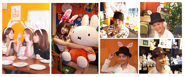うさ耳をつけて楽しむカフェだが、本格フレンチ・本格スイーツ・アーティスティックな本格雑貨を楽しめる、として人気のニコラシャールカフェを中心に、うさぎクレープうさぎシュークリーム工場、うさぎグッズやかわいい雑貨がたくさんの雑貨屋さんの4ショップを楽しめる「ニコラハウス」(パックアーツ株式会社 久々野智 小哲津(くくのち こてつ)プロデュース渋谷区神宮前4-26-5 1・2階)