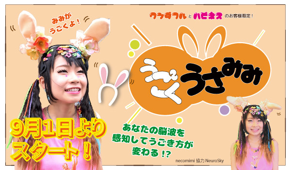 「ハピネスうさ耳」と「ワンダフルうさ耳」のお客様は、世界初!ニコラハウスがある企業と開発した、「脳波で動くうさ耳」もつけられます!