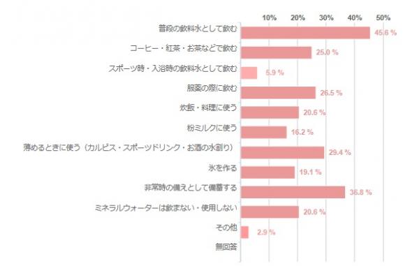 質問2:「ご家庭でどんな時にミネラルウォーターを飲用・使用されますか?」