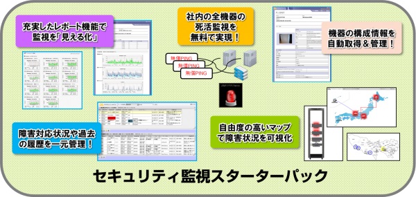 「セキュリティ監視スターターパック」は、社内に存在するサーバー・ネットワーク機器の包括的なログ収集・保全とログ監視・通報を圧倒的な低価格で実現でき、セキュリティ対策を強化したい企業様に最適なパッケージとなっております。